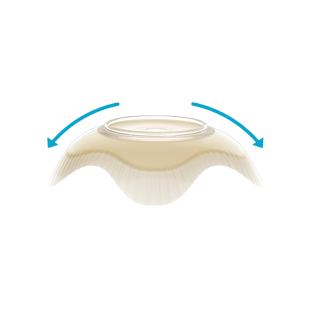 z ramionami, któe przylegają do wypukłości oraz pomagają zredukować fałdy i zagniecenia na przylepcu.